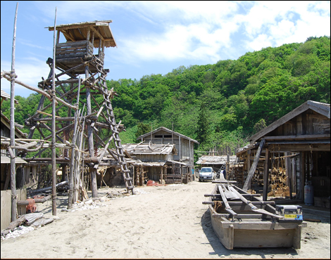 At the base of Mt. Gassan is a vast movie set where various productions are filmed. It features a fishing village, Edo-period post town, collier's hut, watermill, and other reconstructed features of traditional mountain settlements. Visitors can experience stage sword-fighting, archery, taiko drumming, and more!